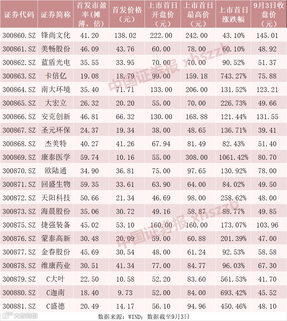 自8月24日以来,按照注册制发行的创业板新股,已上市两批累计21只。