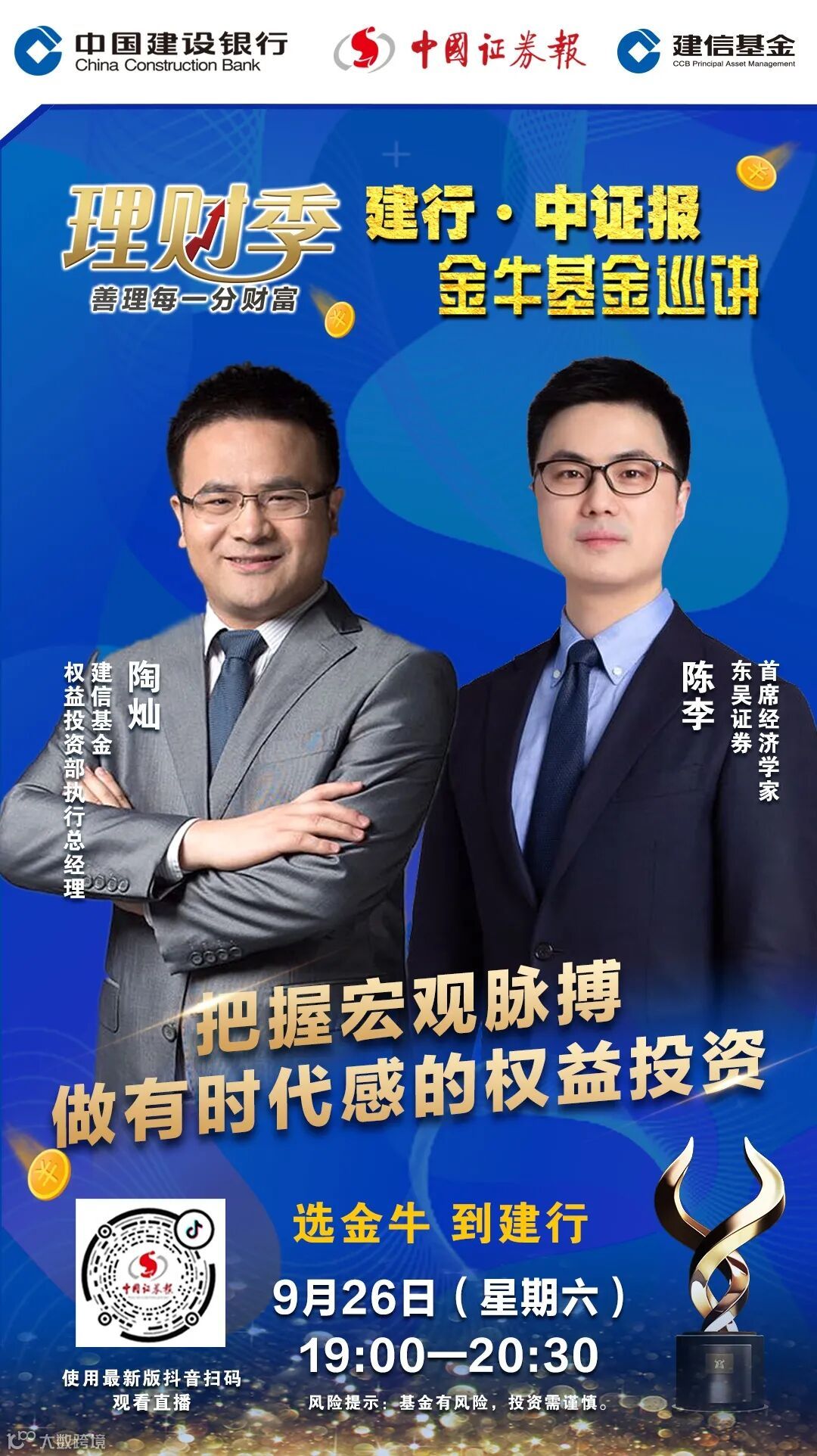 9月26日(周六)晚7点,“建行∙中证报金牛基金巡讲”第十场将隆重登场,敬请期待。