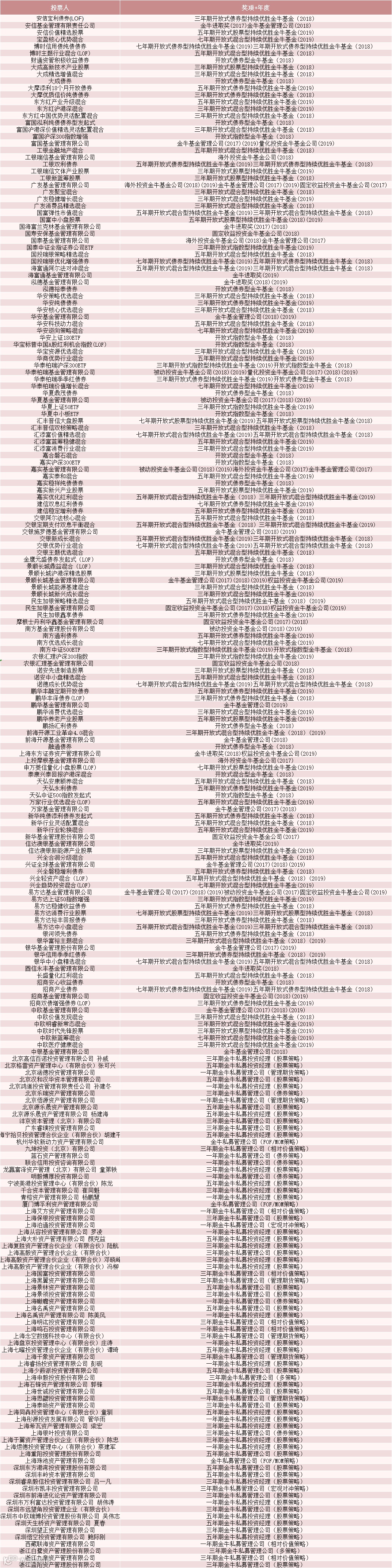 2018年、2019年评选出的五年期封闭式持续优胜金牛基金、五年期开放式股票型持续优胜金牛基金、五年期开放式混合型持续优胜金牛基金、五年期开放式债券型持续优胜金牛基金、五年期股票策略金牛私募投资经理,其每个投票权的权重系数为1.8。