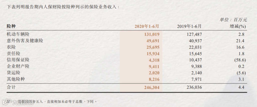 据中国人保2020年半年报,人保财险上半年农险业务收入为256.95亿元,同比增长16.6%。以人保财险上半年保险业务收入2463.04亿元计算,农险占比超过10%,同比提高约1个百分点。