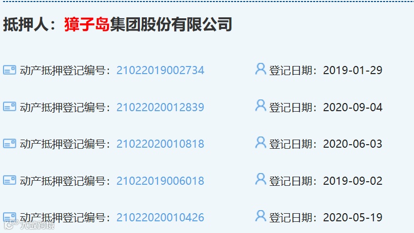 此前,獐子岛集团在2019年1月、2019年9月、2020年5月和2020年6月已先后进行了四次动产抵押。