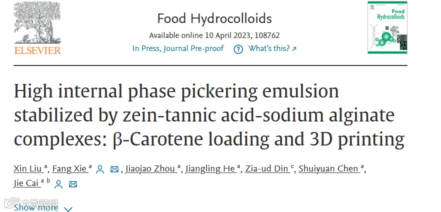 总之,本研究中制备的ZTS-HIPEs不仅可以作为β-胡萝卜素的有效递送载体,还可以作为3D打印的潜在油墨。这项研究的结果有望为营养输送系统和未来食品制造提供HIPEs研究的新见解。