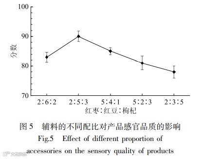 方法:本文以大豆、大枣、枸杞、红豆为原辅料,通过单因素实验和正交试验,考察了黄豆与辅料(红枣粉、红豆粉和枸杞粉)总量比、料水比、蔗糖添加量、奶粉添加量、红枣∶红豆∶枸杞的质量之比等对植物蛋白饮料感官的影响,获得植物蛋白饮料原辅料的配方;通过测定饮品的稳定系数和离心沉淀率,考察了复合乳化剂和复合增稠剂对产品稳定性的影响,获得植物蛋白饮料中乳化剂和增稠剂的配方;通过测定产品的营养成分和色泽情况,考察了植物蛋白饮料的营养和外观特性;最后通过检测植物蛋白饮料的粒径和流变学特性来进一步验证研制的产品的稳定性情况。