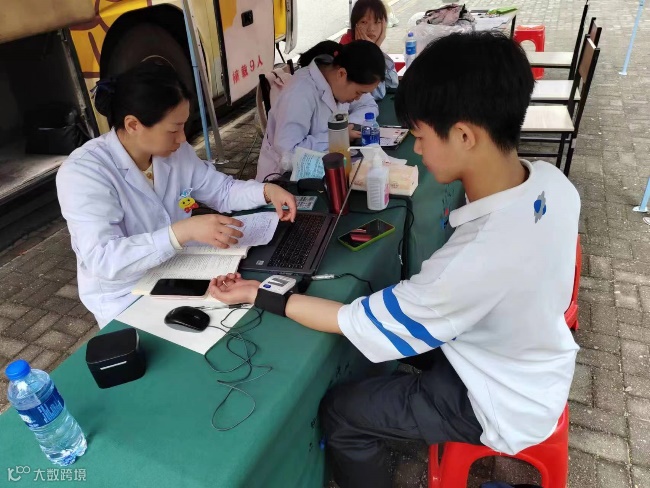 配合着医护人员测量体温、血压