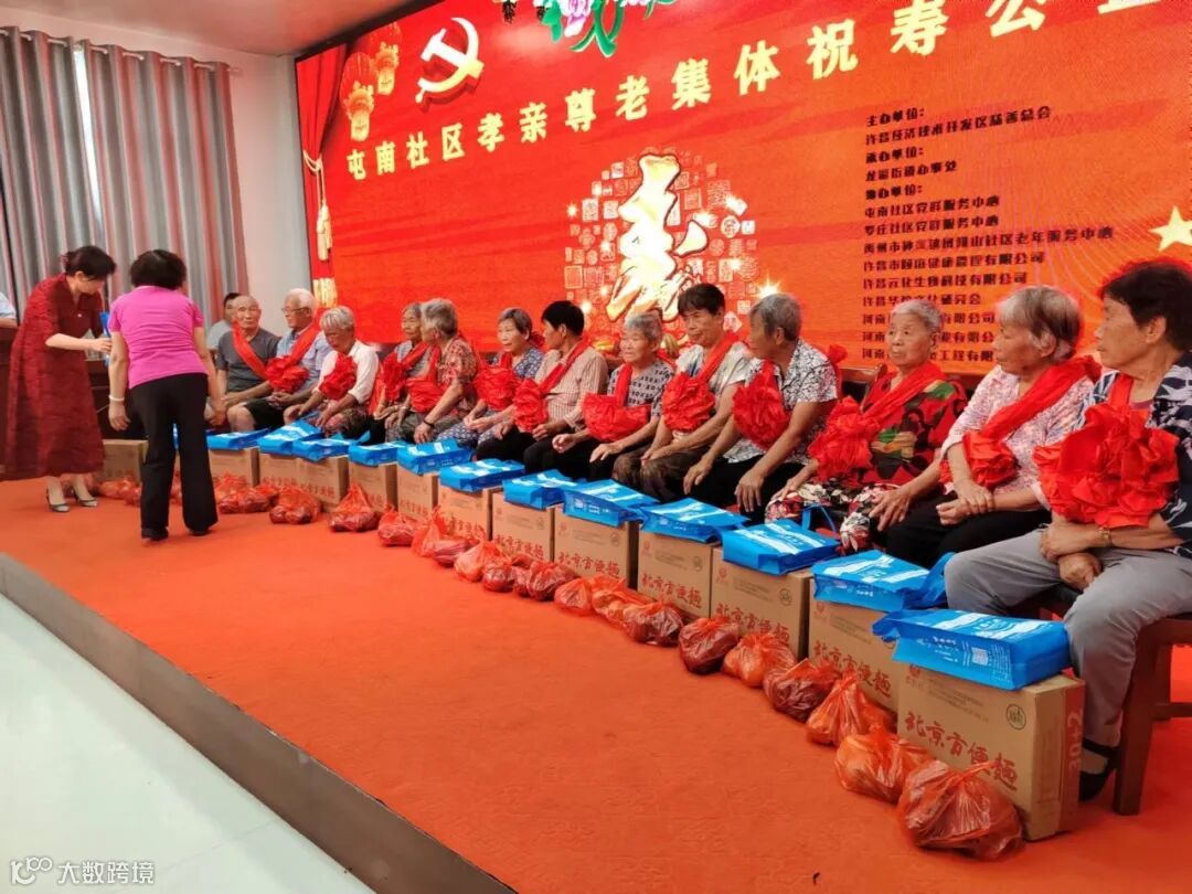 2023年7月3日上午,元化生物集团在开发区屯南社区为老人集体祝寿,开展爱老敬老大型公益活动!