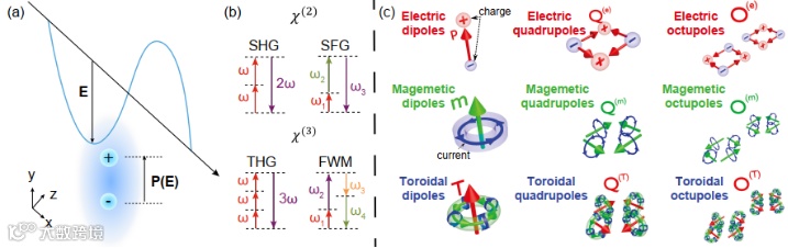 图2. 非线性极化示意图及典型二阶、三阶非线性效应与多极展开形式