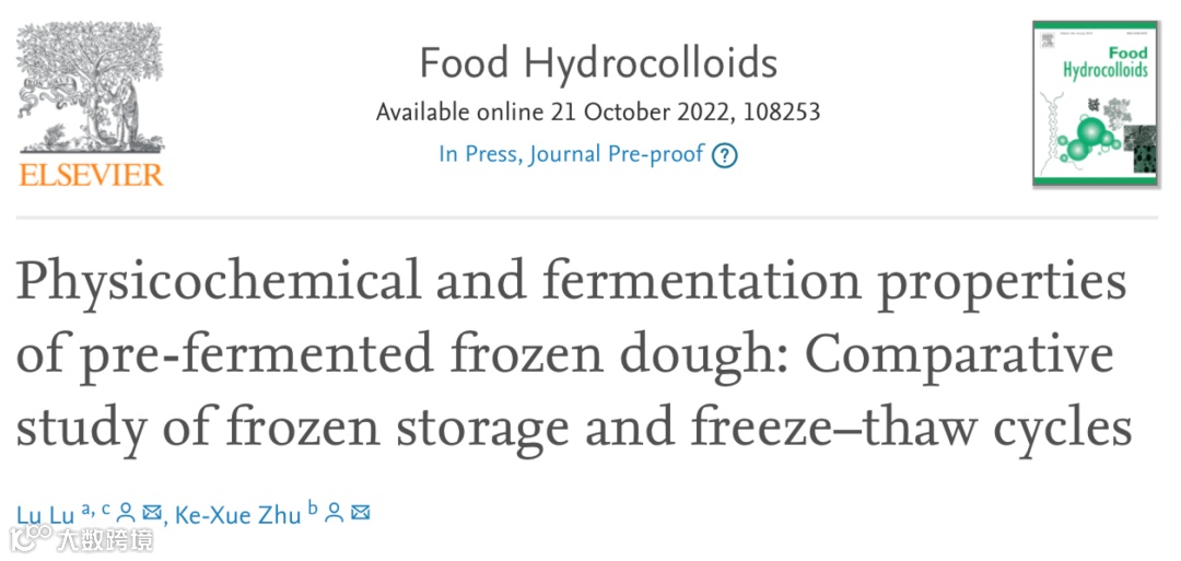 2022年10月21日,江南大学朱科学教授团队和中南林业科技大学卢露博士联合在国际期刊Food Hydrocolloids(Q1,IF: 11.504)发表题为“Physicochemical and fermentation properties of pre-fermented frozen dough: Comparative study of frozen storage and freeze–thaw cycles”的研究性论文。