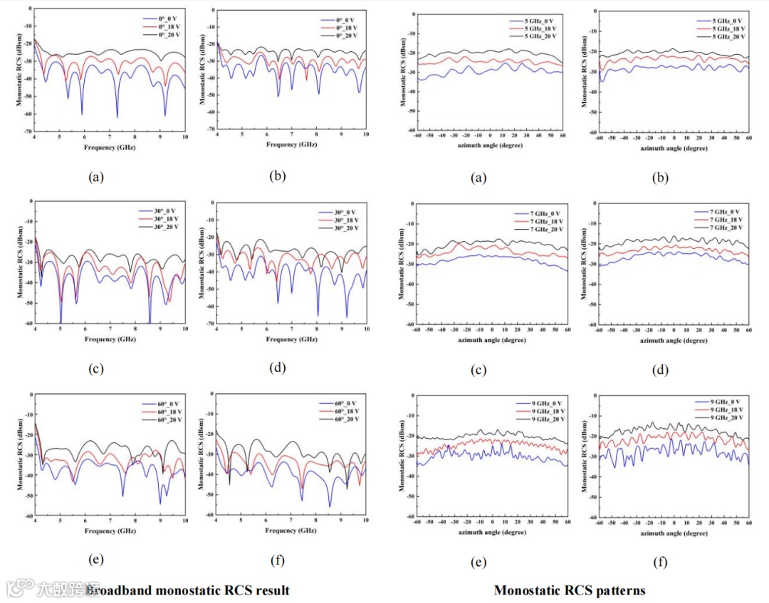 图3 宽角可调回射器宽带、宽角单站RCS调控性能的实测结果