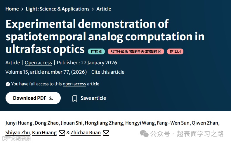 Huang, J., Zhao, D., Shi, J. et al. Experimental demonstration of spatiotemporal analog computation in ultrafast optics. Light Sci Appl 15, 77 (2026).