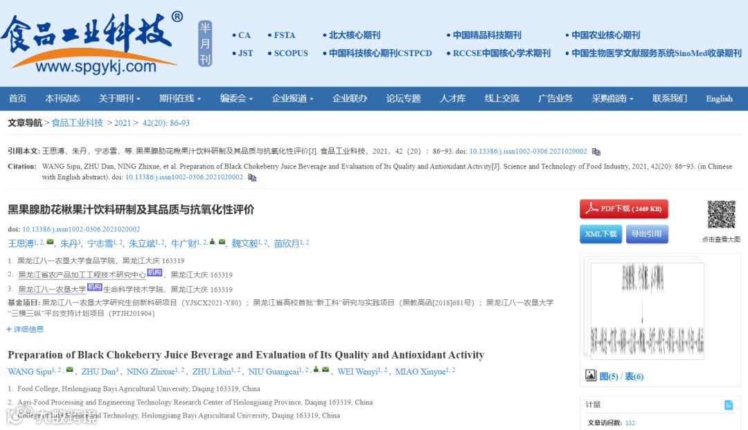 黑果腺肋花楸果汁饮料研制及其品质与抗氧化性评价