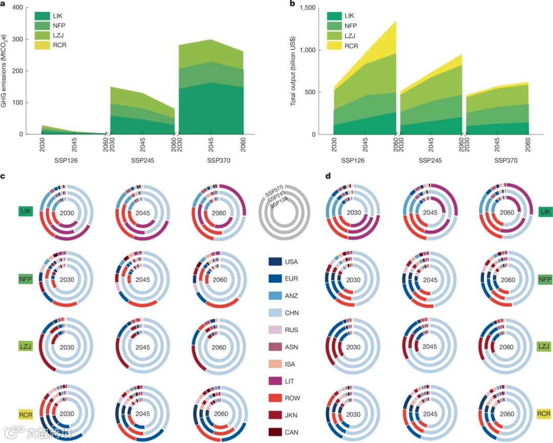不同循环利用情景下的区域和部门排放变化