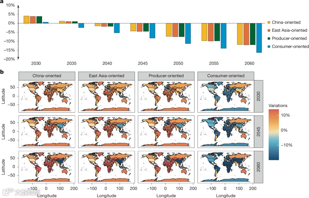 研究系统性地揭示了全球锂电池供应链脱碳过程中,经济效率与区域公平之间的复杂权衡关系,为全球治理提供了超越单一视角的综合决策依据。研究提出的最优策略框架,为有效应对上述挑战提供了协同治理机制。在该策略下,预计到2060年全球锂电池供应链的平均排放强度可降低35.87%,其中中国的减排潜力可达42.35%,美国、欧盟的减排潜力也分别可达39.14%、37.28%。