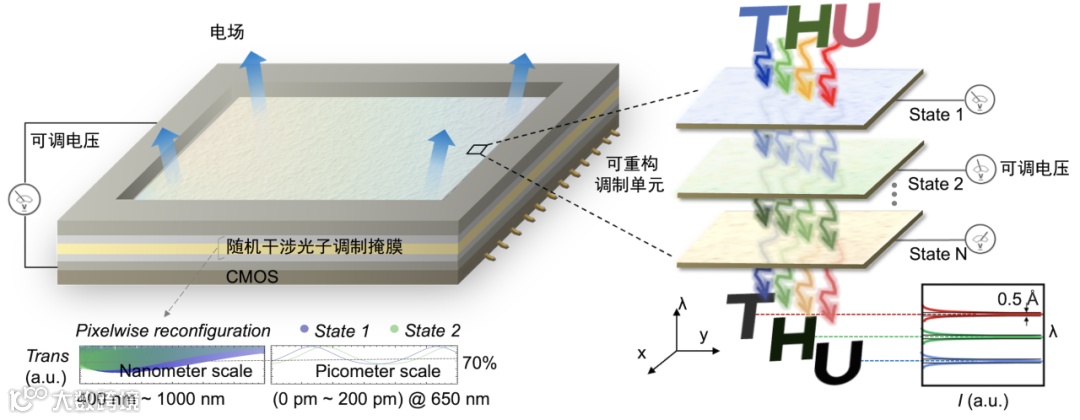 据此,清华大学信息国家研究中心光电智能技术交叉创新群体、电子工程系方璐教授课题组另辟蹊径,首创了可重构计算光学成像架构研制了高分辨光谱成像芯片“玉衡”,实现了亚埃米级光谱分辨率千万像素级空间分辨率的快照光谱成像。
