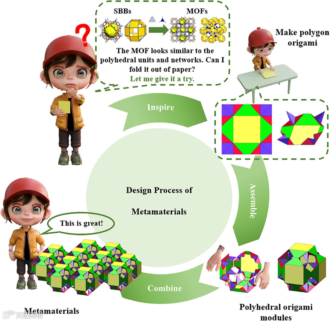 折纸工程化实现:将MOF的分子构筑单元概念转化为宏观的、可折叠的多面体折纸单元。