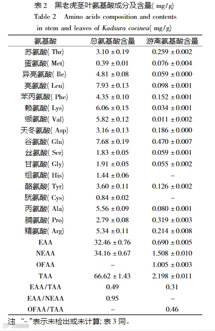 2 黑老虎茎叶总氨基酸成分及含量分析