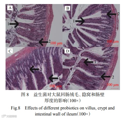 1.6.2益生菌对大鼠肠道组织学切片的影响