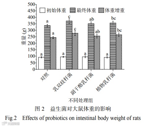1.2益生菌对大鼠体重的影响