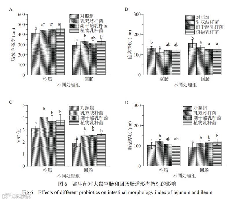 1.6.1益生菌对大鼠肠道形态指标的影响