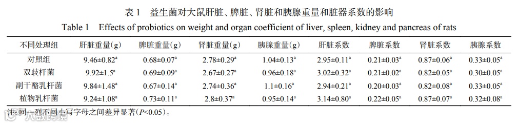 1.5益生菌对大鼠脏器重量