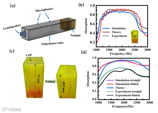 进一步地,通过耦合多个不同长度的FP谐振腔,拓宽了吸声频带。研究团队通过3D打印技术制作了所设计的结构并进行了实验验证。实验结果与理论和仿真结果高度一致,确认了设计的有效性。
