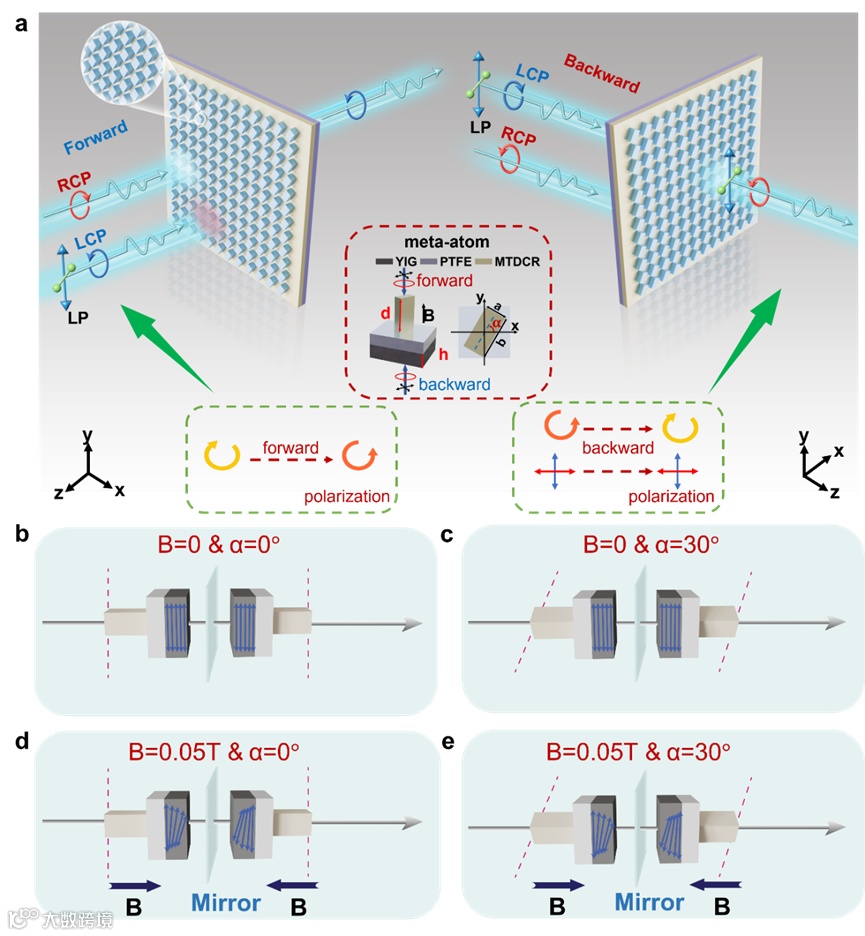 近年来,随着光子技术与信息通信领域的飞速发展,高效、可控的电磁波定向传输已成为光电子学领域的重要前沿课题。传统的线性、时不变系统普遍遵循洛伦兹互易定理,这在一定程度上限制了光子器件在隔离、保护、全双工通信等方面的功能拓展。非互易性的实现,即主动打破洛伦兹互易性、实现电磁波的单向或方向相关传输,被视为新一代光子系统架构的核心基础。目前,已有的非互易器件多依赖于铁氧体材料、非线性材料或外部驱动,但普遍存在带宽窄、损耗大、仅适用于单一极化以及对入射角缺乏鲁棒性等问题,难以满足高速宽带通信和量子信息处理等应用对多偏振宽带非互易传输的迫切需求。尤其是在亚波长尺度下,如何在保持器件超薄、紧凑的同时,实现高效、宽带且支持极化复用的非互易功能,已成为当前亟需突破的关键挑战。