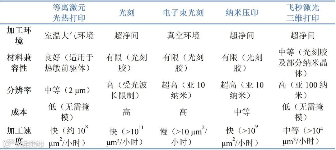 表1:等离激元光热打印与其它加工技术对比