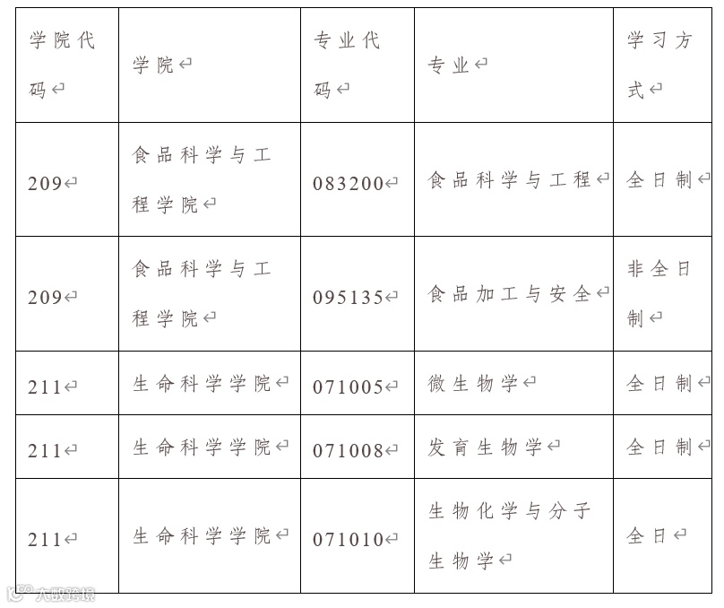 学硕(代码:0972)初试科目:①思想政治理论,②英语一,③食品微生物学,④食品化学;