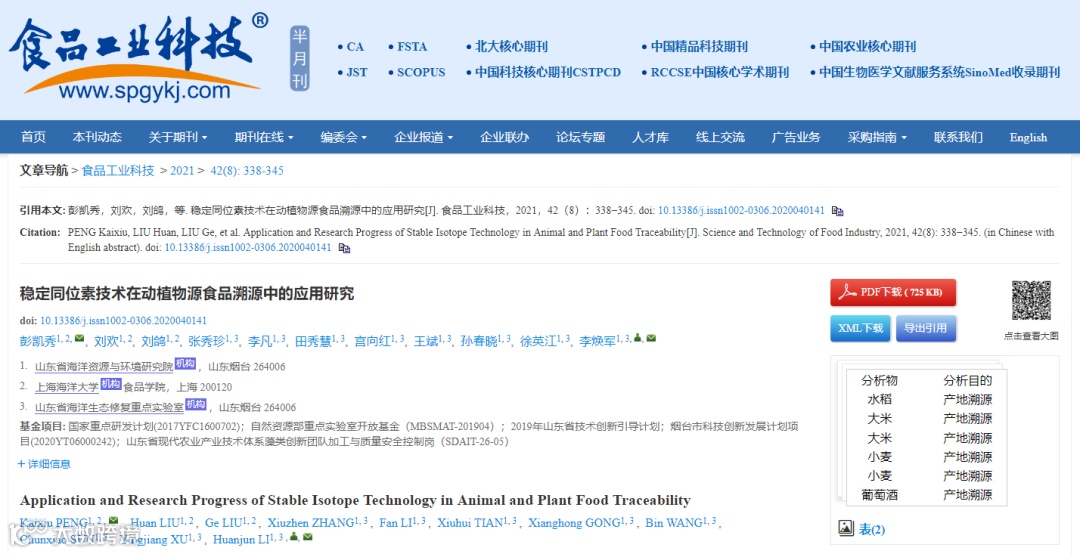 为了弥补可追溯体系的不足及建立健全可靠的食品安全保障体系,促进动植物源食品产地溯源技术的研究,李焕军团队梳理了近年来国内外稳定同位素技术在动物源食品和植物源食品溯源中的应用进展,并对同位素溯源技术的推广应用难点及发展方向进行展望。