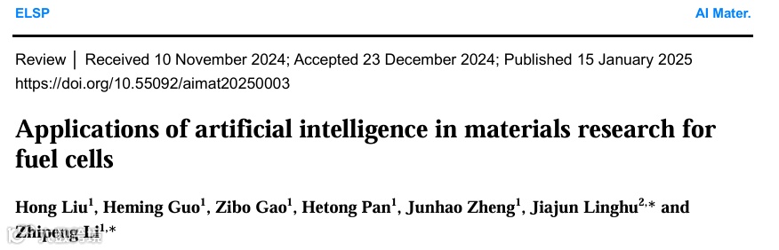 本文引用如下:Hong Liu, Heming Guo, Zibo Gao, Hetong Pan, Junhao Zheng, Jiajun Linghu,* and Zhi-Peng Li,*. Applications of artificial intelligence in materials research for fuel cells. AI Mater. 2025(1):0003, https://doi.org/10.55092/aimat20250003.