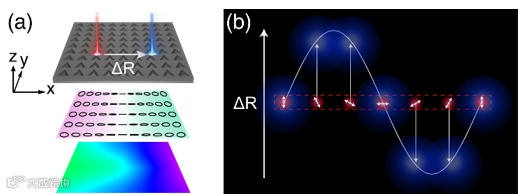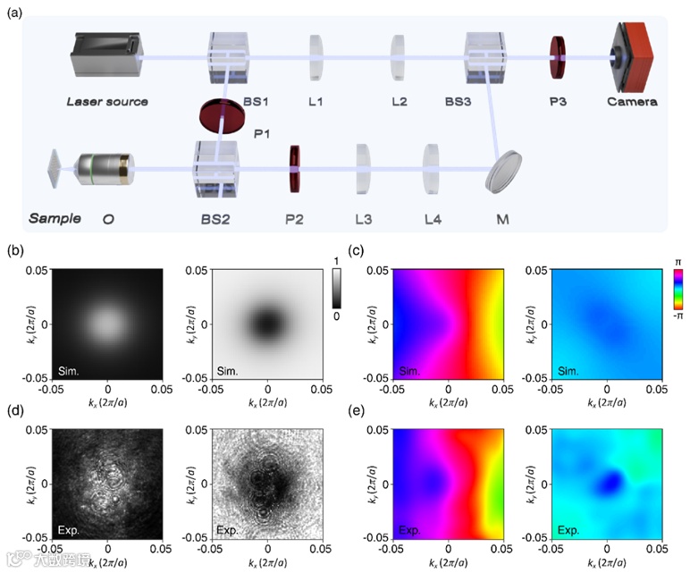 通过实验室自主搭建的相位测量系统,研究团队直接测量了该光子晶体平板所实现的动量空间相位调制和转化率(图3)。交叉极化情况下展现了预期的高效率特性以及所具有的高相位梯度调制,为实现偏振可调的光束位移提供了基础。
