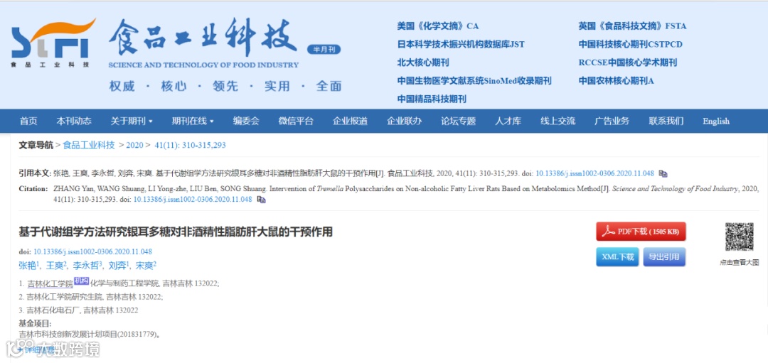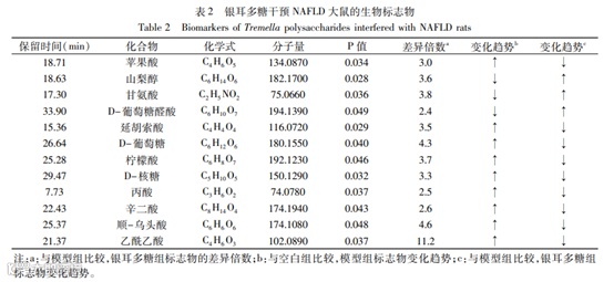 基于代谢组学方法研究银耳多糖对非酒精性脂肪肝大鼠的干预作用