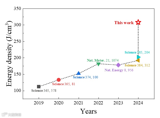 图1 最近电介质薄膜的能量密度记录