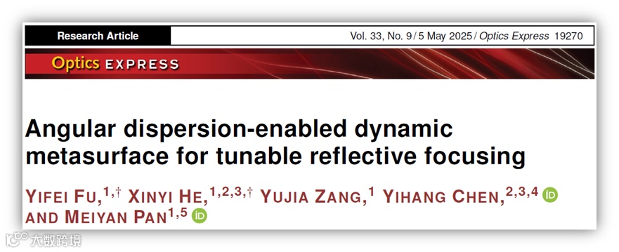 近日,季华实验室潘美妍团队联合华南师范大学陈溢杭课题组提出了一种介质超构表面动态变焦新策略。研究通过精确调控超构单元中激发的米氏谐振角度色散特性,首次实现了基于入射光角度调控的超构透镜反射二维聚焦动态调焦。该成果通过建立入射角度与焦点位置的动态关联,成功拓展了动态超构光学器件的调控自由度,为下一代便携式光学系统的研发提供了重要的理论支撑和技术路径。相关成果以“Angular dispersion-enabled dynamic metasurface for tunable reflective focusing”为题,发表在《Optics Express》期刊上。