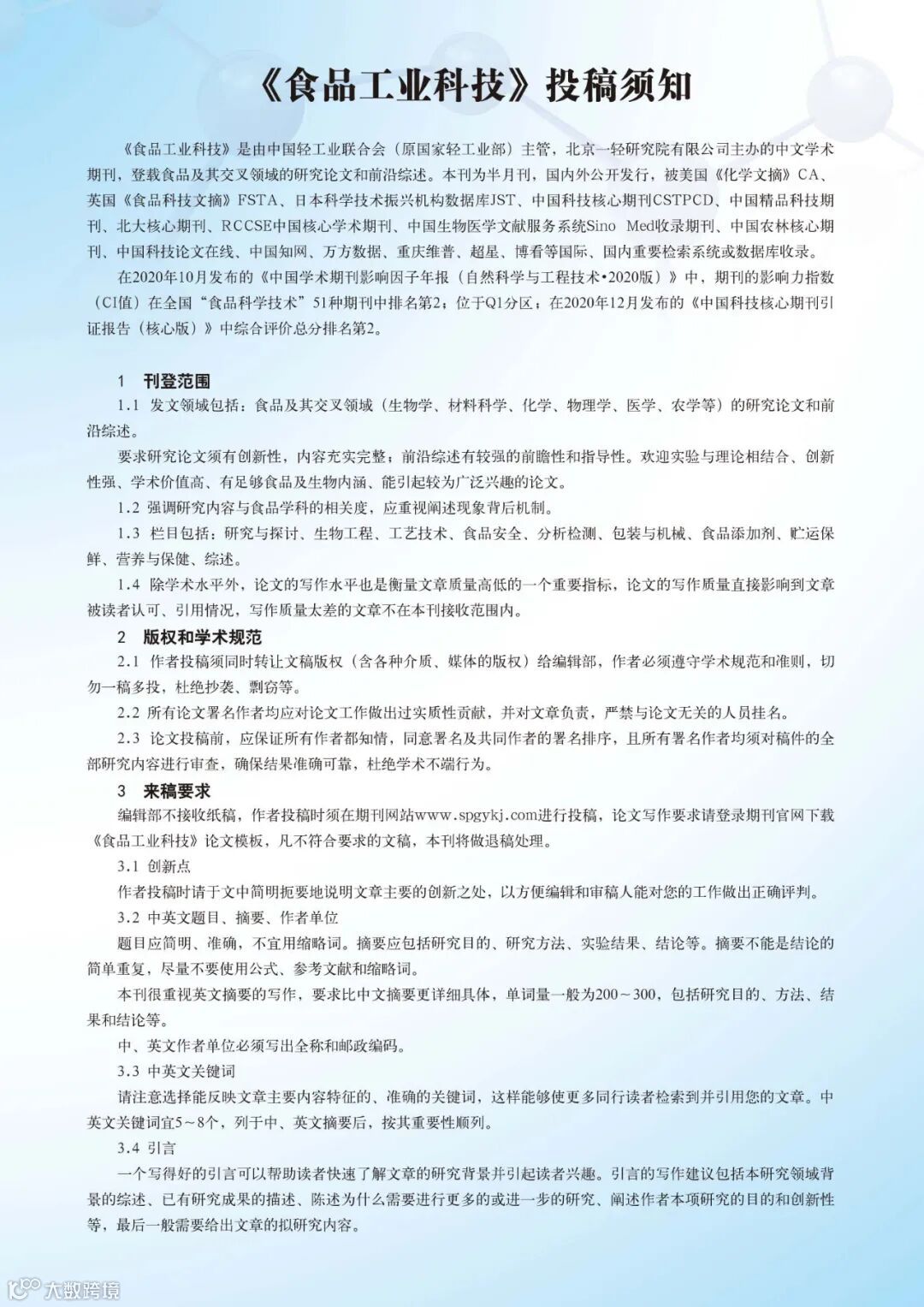 《食品工业科技》彩色特殊版位