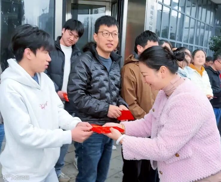 总经理向卫红、副总经理周青为员工送上寓意吉祥的开工红包,传递新年好运、财源广进的美好祝愿。红包虽轻,情意厚重,既承载着公司对员工的关怀与期许,也点燃了全体海元人新一年干事创业的澎湃热情。现场暖意融融、笑语盈盈,处处洋溢着喜庆祥和的蓬勃朝气。