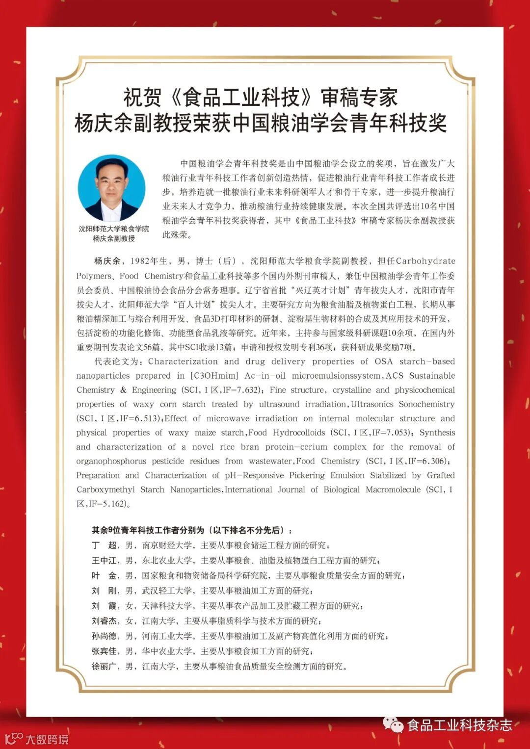 《食品工业科技》编辑部与作者、读者的交流平台。《食品工业科技》既是反映当前国内外食品工业技术水平的窗口,又是新技术应用推广的桥梁,面向科研、生产,满足各层次需求。