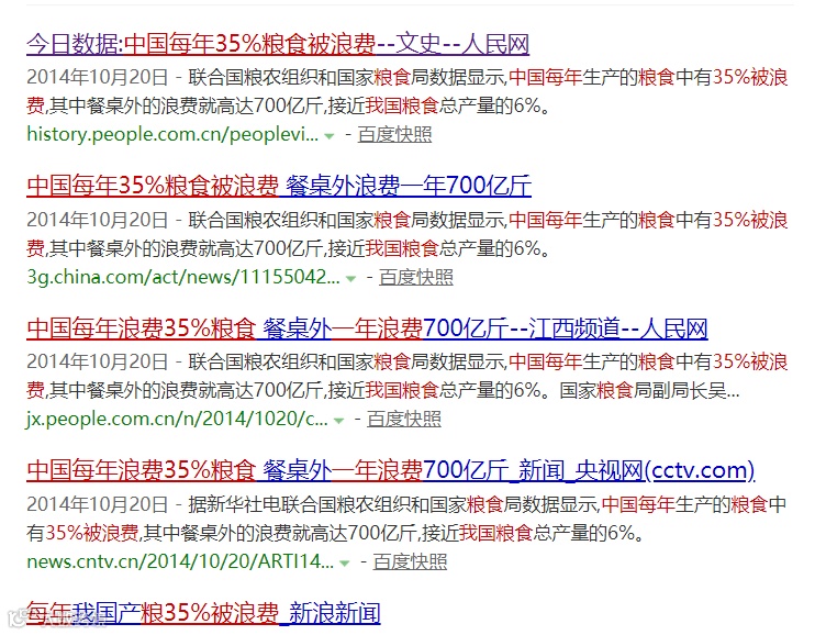 数据显示,我国每年浪费的粮食达到了700亿斤!平均每年浪费了35%的粮食。。