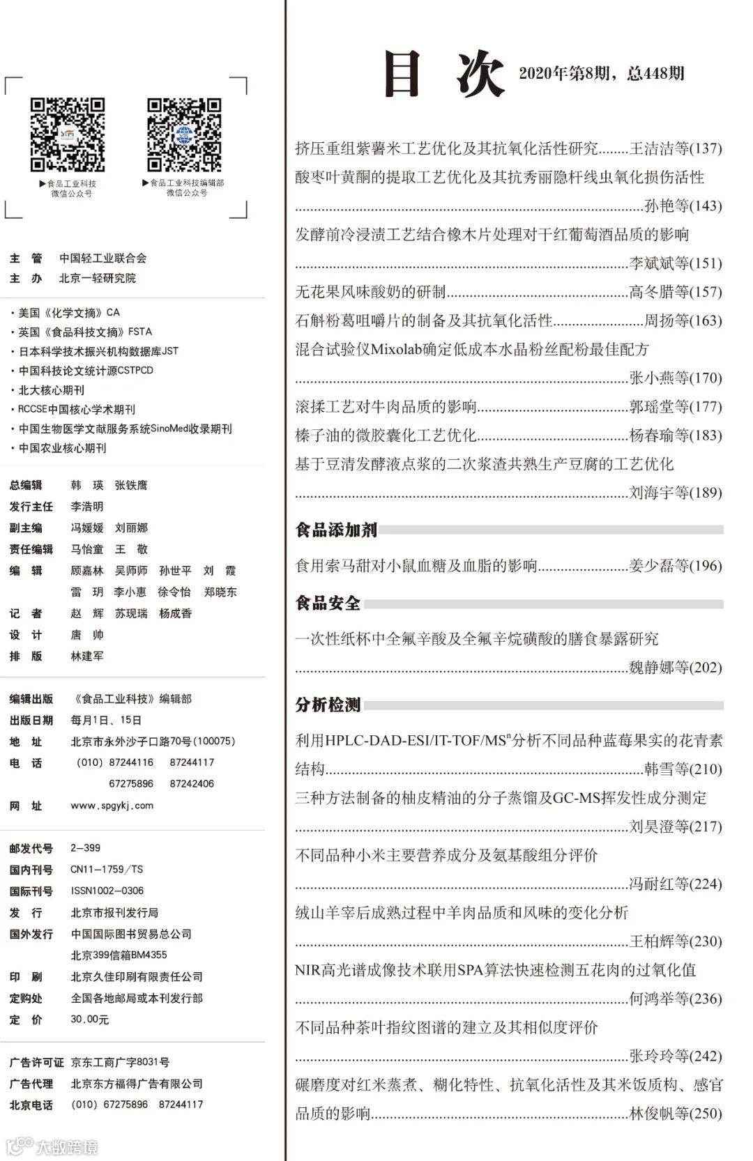 《食品工业科技》官网及微信公众号免费OA阅览。