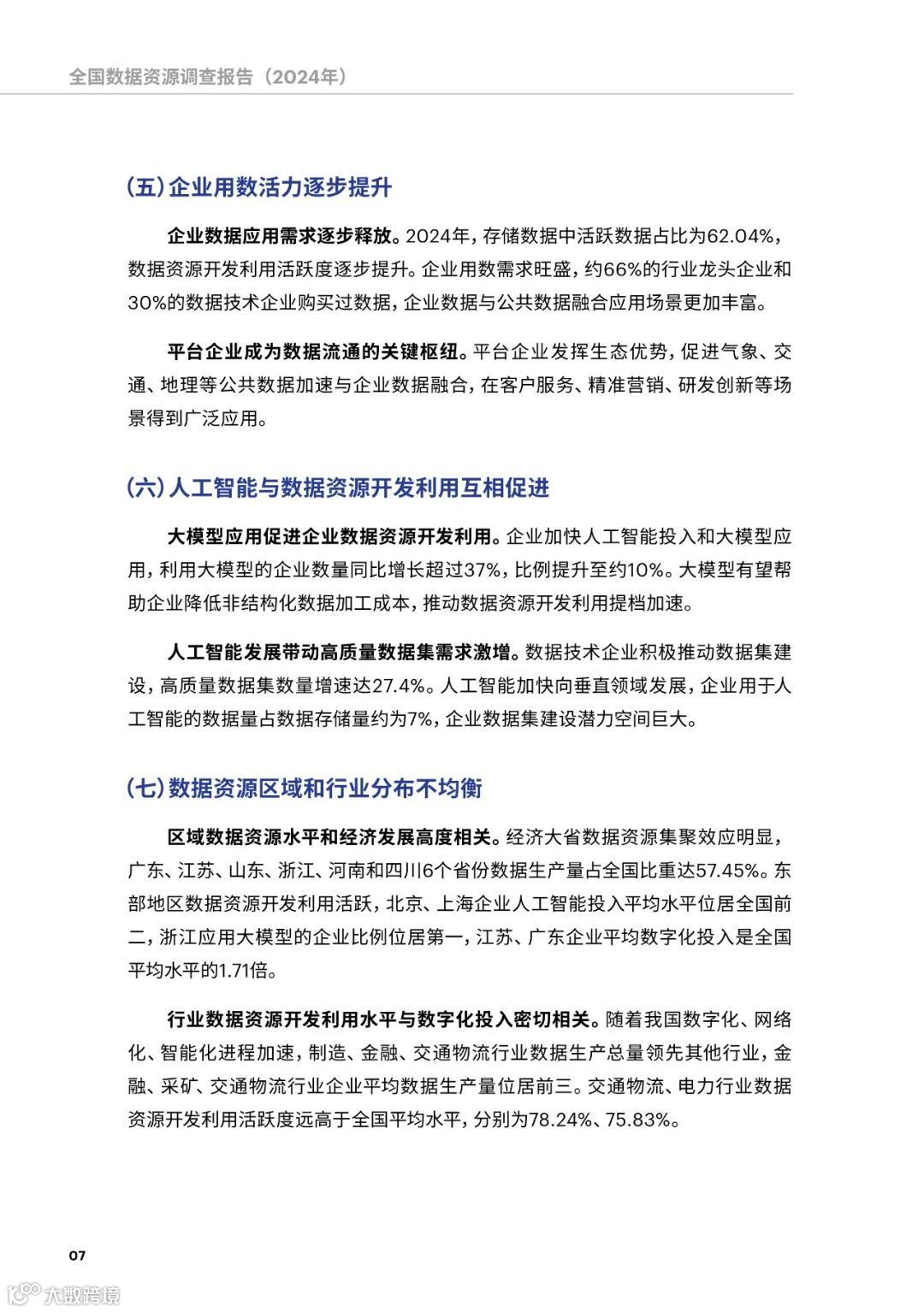 报告显示,我国数据资源规模优势持续扩大,数据资源开发利用活跃度稳步提升,各类主体加快人工智能布局投入,数据要素市场化、价值化进程进一步提速。