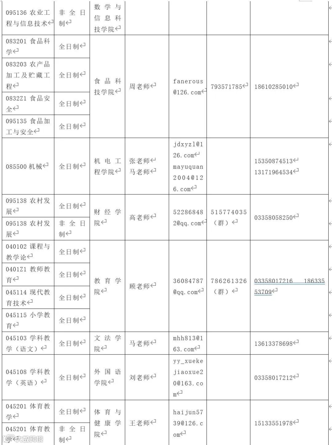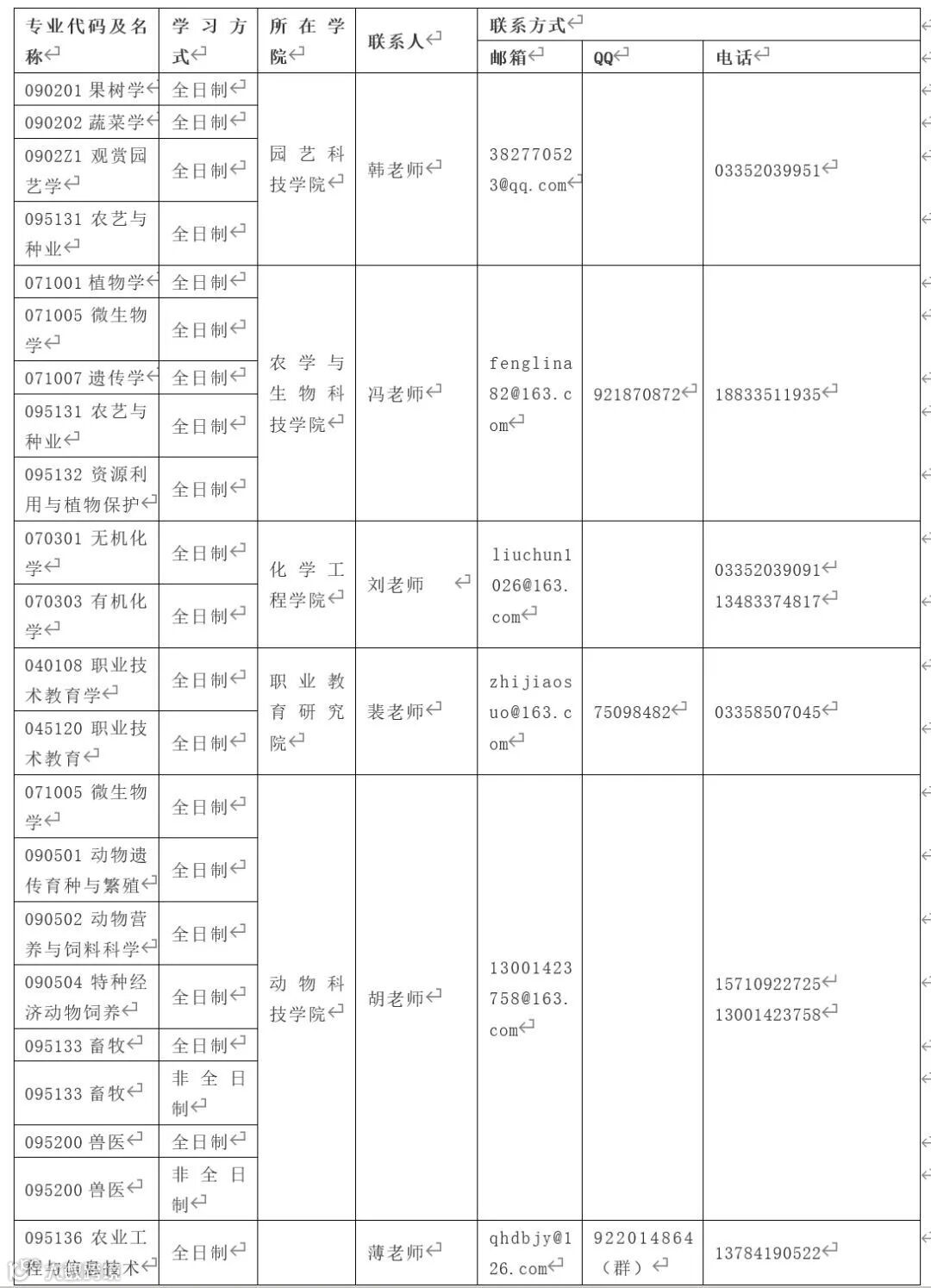 附表 2020年招生专业及联系方式