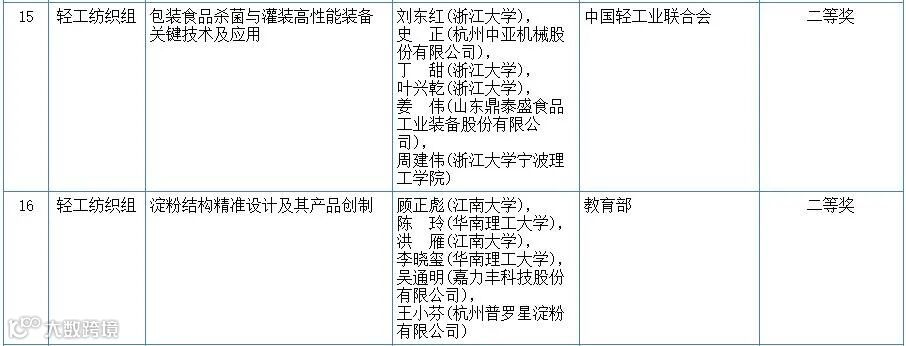 食品领域2020年度国家科学技术奖初评结果公示
