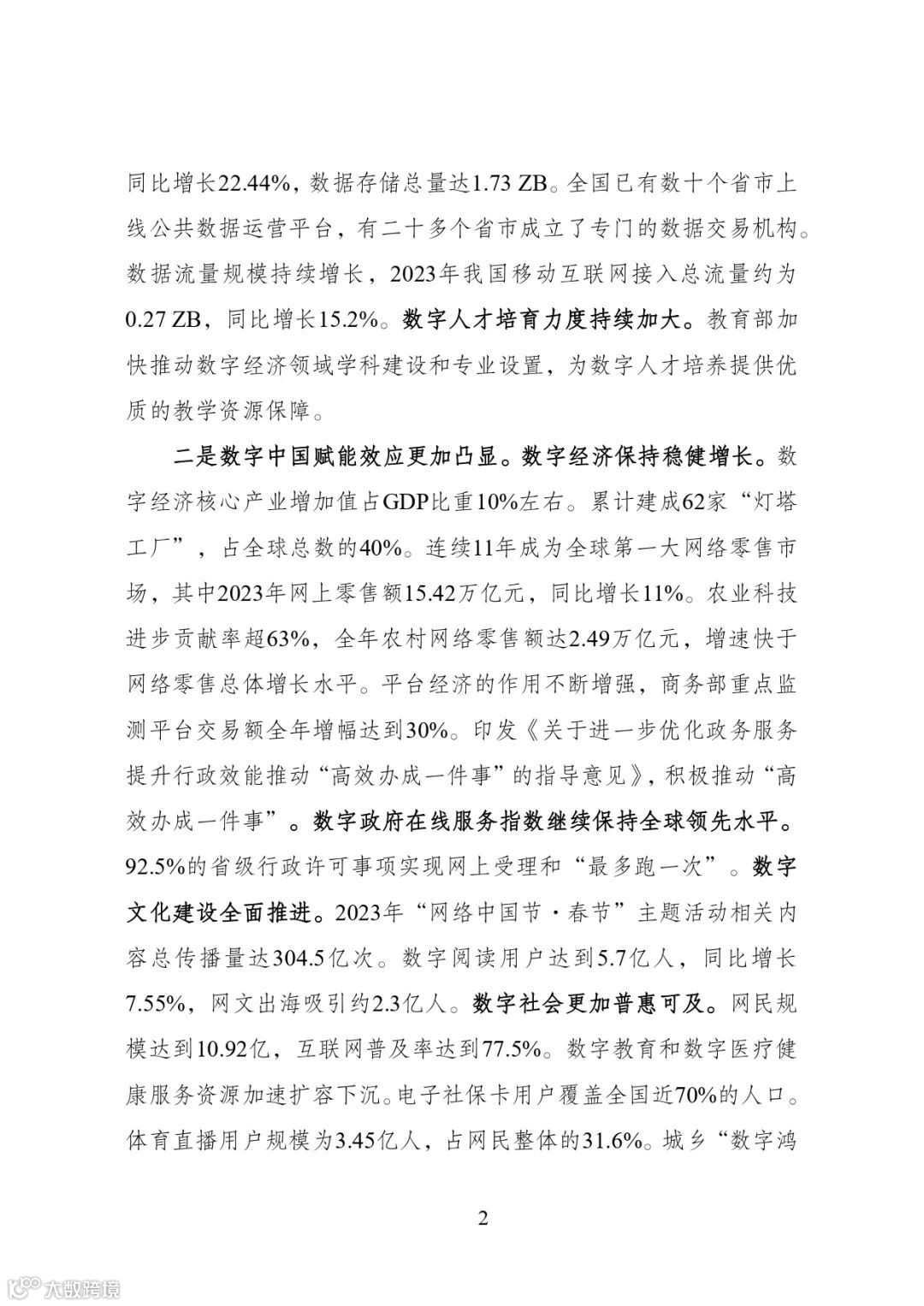 为贯彻落实党中央、国务院关于建设数字中国的重要部署,国家数据局会同有关方面系统总结2023年数字中国建设取得的重要进展和工作成效,展望2024年数字中国发展情况,编制形成《数字中国发展报告(2023年)》于6月30日正式发布。报告原文如下。