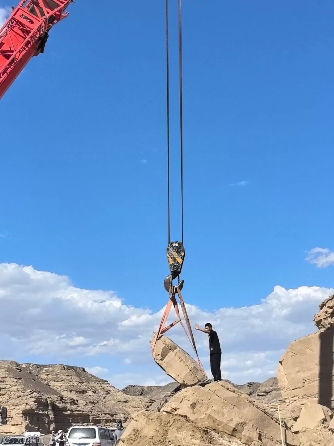 该脚印化石将运往哈密翼龙博物馆的现场