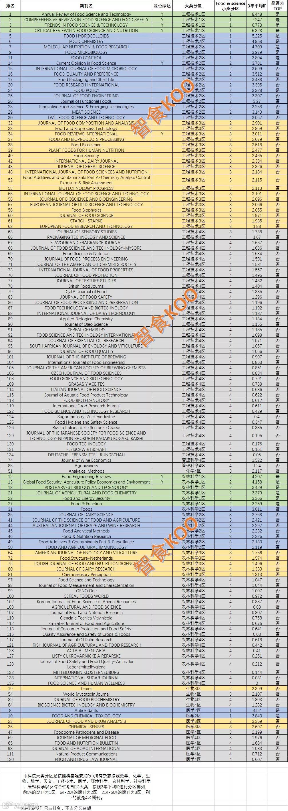 食品科技类 | 2019中科院SCI分区表新鲜出炉!