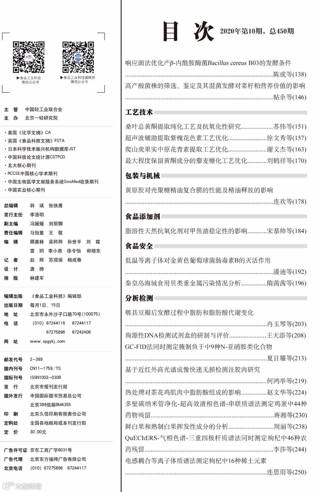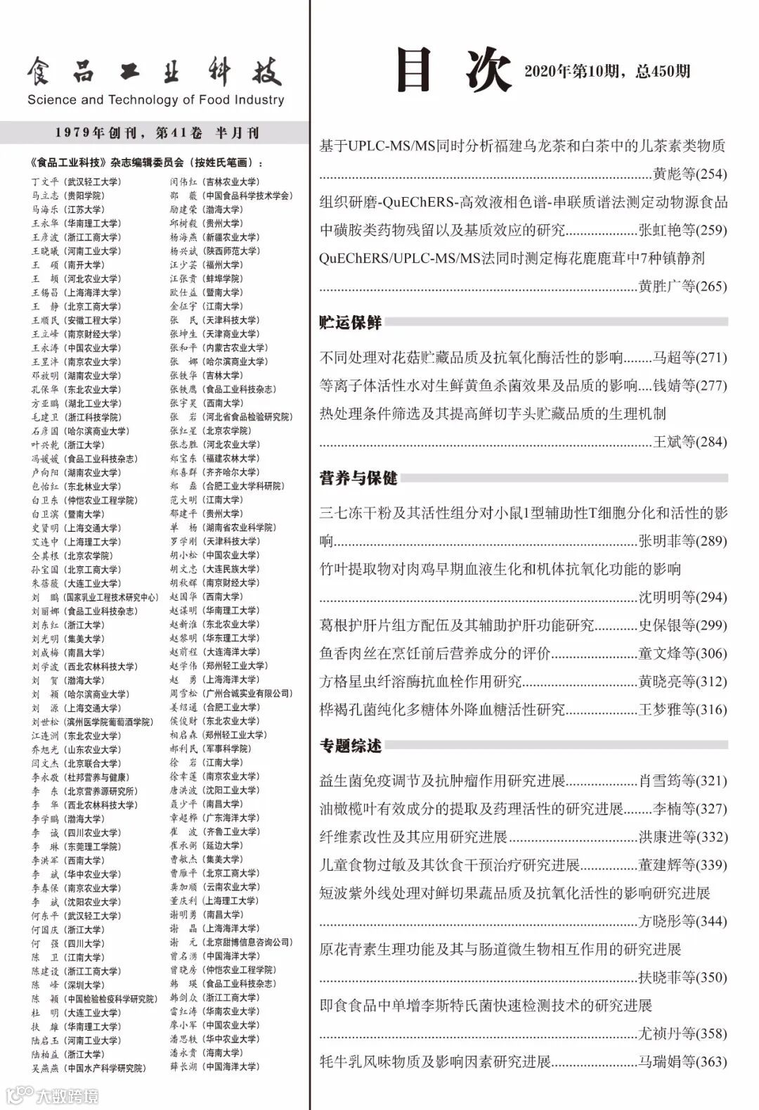 2020年41卷第10期封面及目次 食品工业科技编辑部