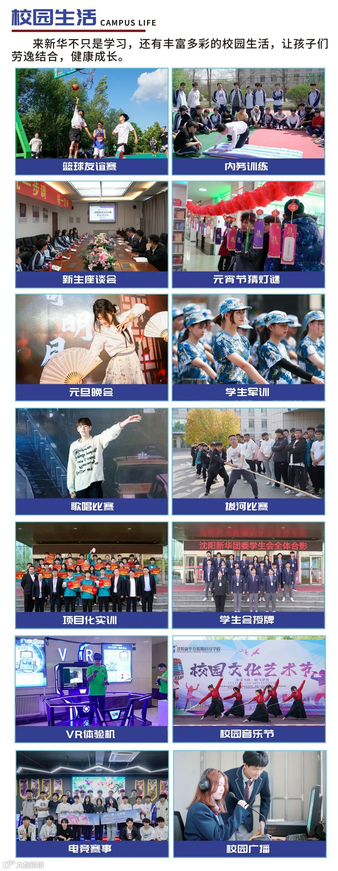 学校概况:沈阳新华互联网科技学校坐落于辽宁省沈阳市沈北新区职教城,学校始终站在互联网教育的前沿,致力于培养互联网行业精英,立足信息技术平台,紧跟科技发展,打造互联网技术教学、综合专业并向发展的高新专业群。沈阳新华互联网科技学校注重学子实践能力的培养,为增加学子的创就业实践能力和竞争力,以就业服务为导向设置热门互联网专业,并全面打造各专业对应项目实训室,让学生在校就能亲自参与真实项目实训,在实际操作中获取技能。