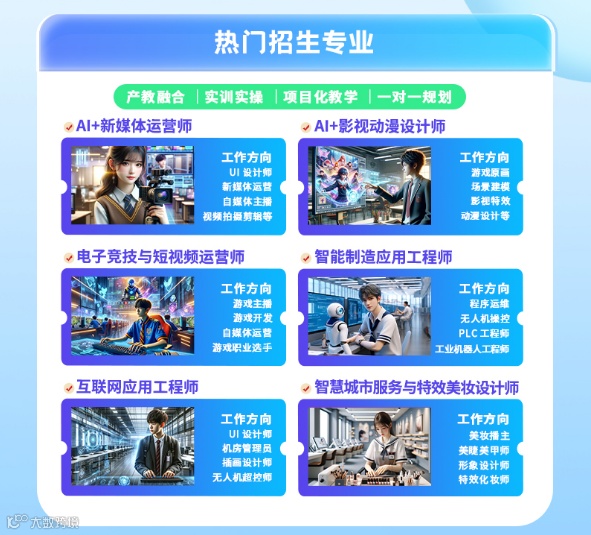 在数字化转型浪潮中,沈阳新华积极响应国家所需,探索“AI+”教学模式,开设了AI+影视动漫游戏设计、AI+新媒体运营、智能制造应用工程师等新兴前沿专业,还开设有无人机、短视频与直播运营方向等市场需求旺盛高技能就业专业,让学生拥有广阔就业前景,为社会培育刚需职业人才。