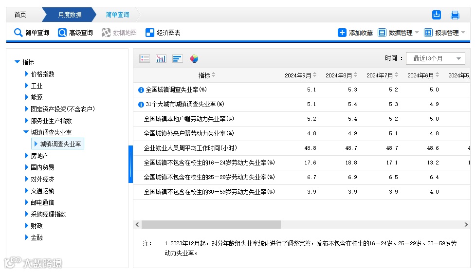 虽然2023年关于青年失业率的数据曾经有着巨大的争论,相关月份后来的数据也没有公布。但从2024年1月7号以后,新的分类数据重新整理“上架”,这当中的核心变化是,剔除了“在校生”这一庞大人群,重新发布相关的就业和失业率数据。