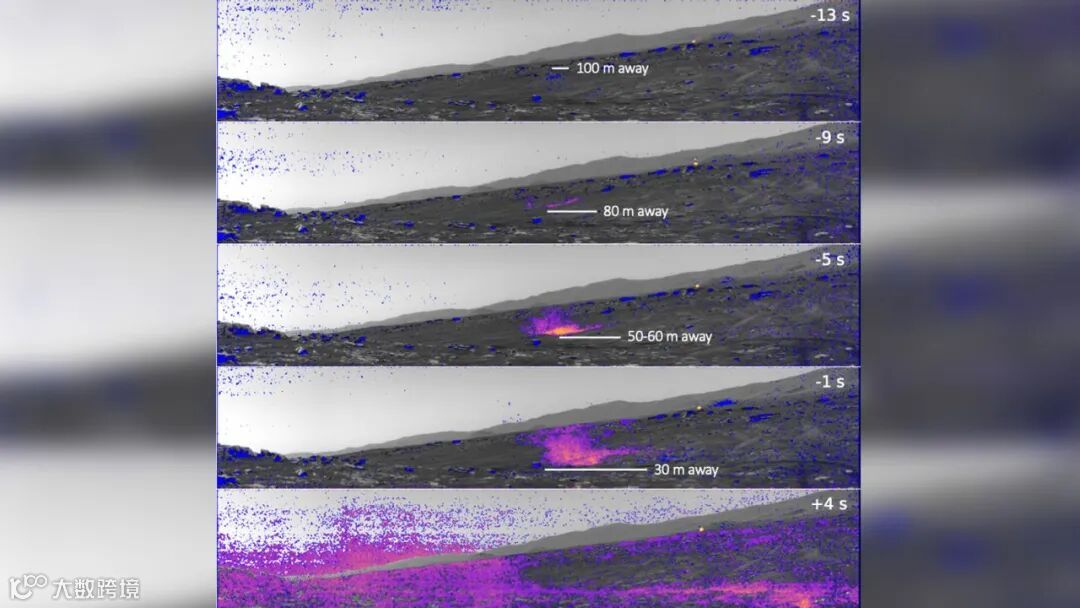 尘暴或尘埃旋风在火星上很常见,它们是这颗红色星球天气模式的一部分。该研究主要作者、法国图卢兹大学高等航空航天研究所研究员内奥米·默多克博士表示,在麦克风捕捉到的一段11秒的片段中,尘暴的前壁和后壁经过火星车时,有两段低频风。在旋风的壁之间是一段平静的时期,当时火星车正处于漩涡的中心。期间可听到爆裂声和嘶嘶声,经确定这是尘埃颗粒击中火星车带来的声音。