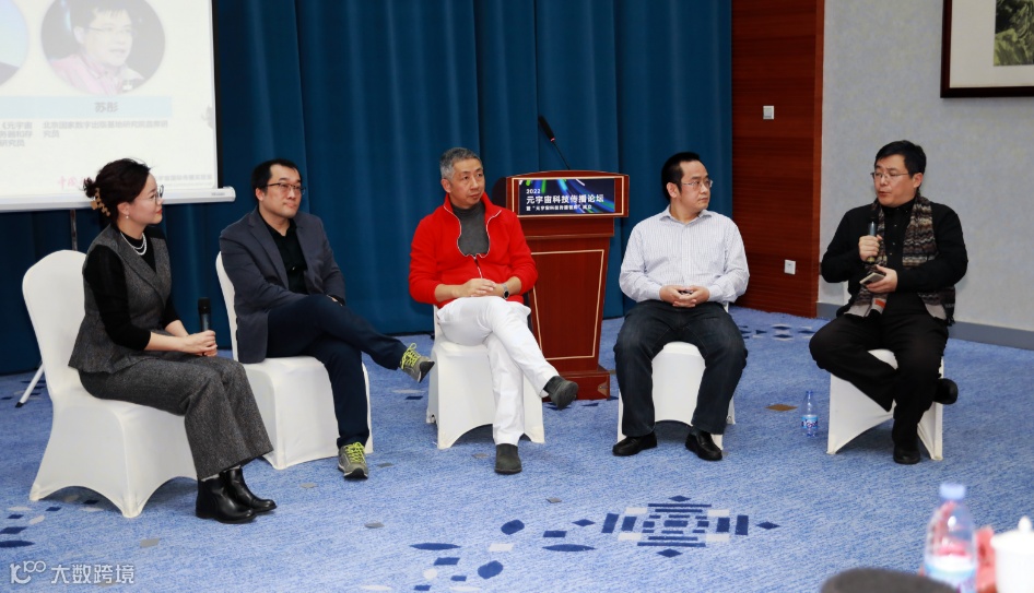 由CICG元宇宙国际传播实验室负责人赵萱主持,清华大学新闻与传播学院副院长张铮、元宇宙系列畅销书作者邢杰、元宇宙产业委联席秘书长叶毓睿、北京国家数字出版基地研究院首席研究员苏彤等专家学者还围绕“挖掘新动力,构建新文明”的主题进行了对话。